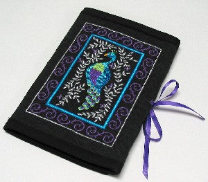 On the outer fabric, mark a rectangle that is 18 inches wide by 9 inches high. Now embroider the design in the center of the marked rectangle. I selected the Peacock design for its elegance and size. It lends itself to metallic thread accents, which are so appropriate for this project.
