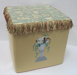 Bring the warm, tranquil glow of Tuscany into your home with an embellished ottoman slipcover. Turn a simple piece of furniture into an eye-catching conversation piece.