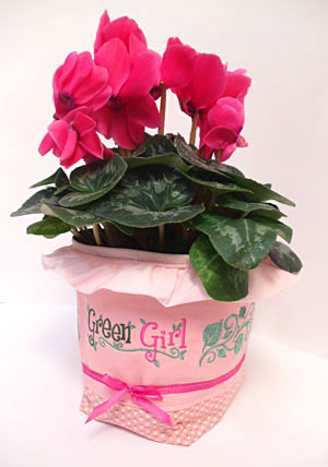 Celebrate the green revival with a shabby chic flowerpot cozy. Ruffles and ribbon help craft a greener future and make your favorite plant one-of-a-kind.