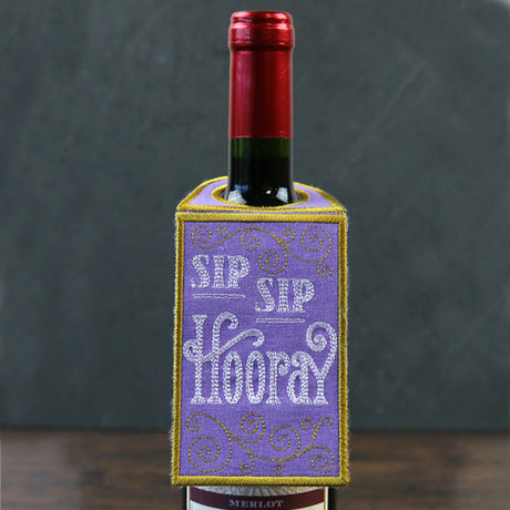 Sip Sip Hooray Wine Tag (In-the-Hoop)