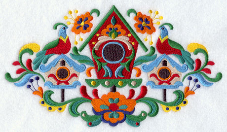 Swedish Folk Feathers - Birdhouse and Birds