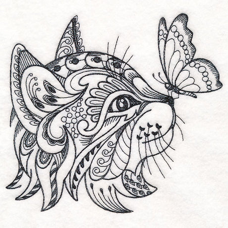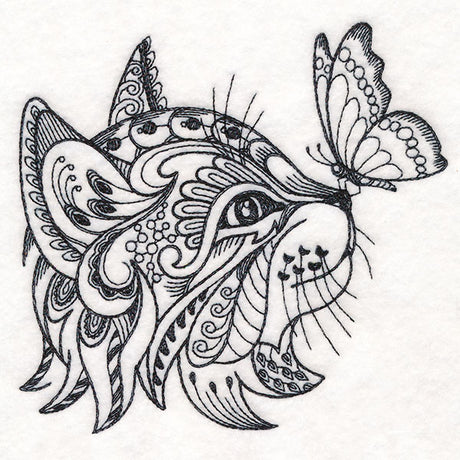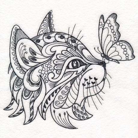 Doodle Treasure - Kitten and Butterfly (Blackwork)