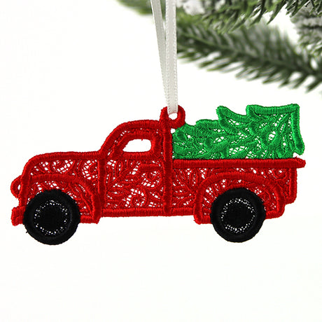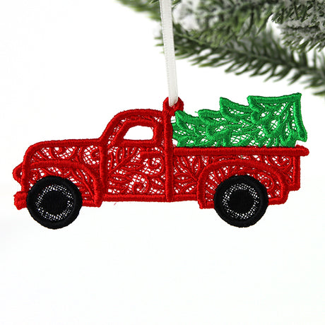 Christmas Retro Truck Photo Frame Ornament (Lace)
