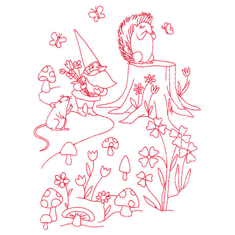 Magical Gnome Scene - Gathering with Friends (Redwork)