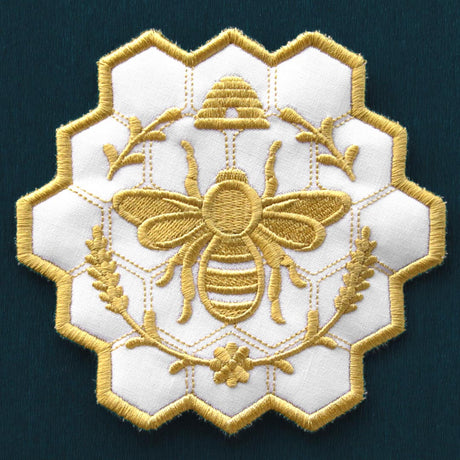 Rustic Elegance Bees & Blooms Hexagon Trivet (In-the-Hoop)