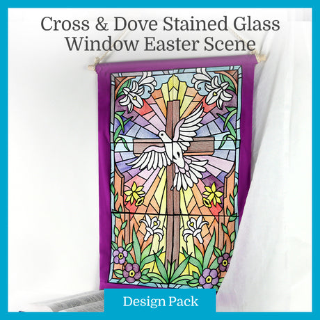 A Cross & Dove Stained Glass Window Easter Scene Design Pack