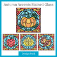 Make Thanksgiving and fall decor inspired by stained glass with machine embroidery designs featuring fall motifs framed by autumn leaves.