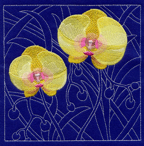 A blend of colorful flowers and sleek sashiko stitching. Embroider the flowers with 40 weight thread; use 30 weight cotton on the sashiko for a hearty look. Project instructions demonstrate the technique.