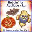 Applique embroidery lets you use your favorite fabric colors, patterns, and prints in a design. These designs include dielines so that you can cut the applique fabric to the shape and size needed for the embroidery. Project instructions demonstrate the steps for applique embroidery.