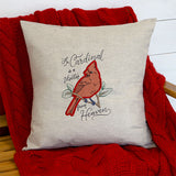 Capture the memory of loved ones lost with an applique cardinal featuring the phrase, "A cardinal is a visitor from heaven."
