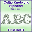 Celtic knotwork forms letters and numbers in this alphabet. The general height of this alphabet is five inches; sizes of individual letters vary. To find sizes of individual designs included in this pack, see the detail below.