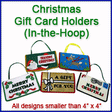 Give your friends and family the perfect gift this Christmas season -- a gift card wrapped in its very own in-the-hoop holder! These adorable gift card holders are a festive...