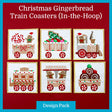 Bring a stitch of Christmas cheer into your home with a fun set of in-the-hoop gingerbread train coasters.