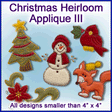 Heirloom applique uses a blanket stitch or E stitch for a traditional look. Use enmeshed, non-fray fabrics, like felt or Ultrasuede. These designs come with dielines so that you can cut the fabric to the right size and shape for the applique. Project instructions demonstrate the steps for working with heirloom applique designs.