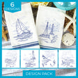 Embark on a nautical adventure with these machine embroidery designs. Combine these Classic Beach Scenes to create decorations on quilts, tea towels, table runners, and more.