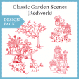 Classic Garden Scene - Wheelbarrow (Redwork)