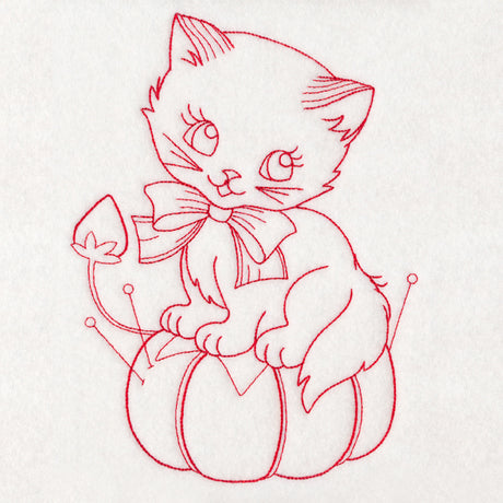 Crafty Cat with Pincushion (Redwork)