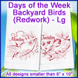 A Days of the Week Backyard Birds (Redwork) Design Pack