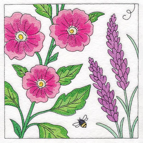Create your own window to a magical garden with these flourishing squares - they can be stitched together to create a complete scene featuring flowers, a hummingbird, butterflies, and more. These machine embroidery designs contain sheer stitching/open areas. Make wall hangings, quilts, and more with solid-color fabrics for best results.