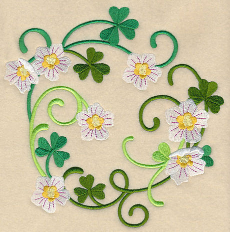 Graceful circles of Irish greenery and wildflowers are beautiful additions to tea towels, table linens, pillow covers, and quilts.