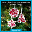 Bring a handcrafted Christmas into your home with stunning ornaments shaped like traditional holiday motifs! Each ornament has a scalloped lace edge and timeless details, making it the perfect project for gifts and decor. Step-by-step project instructions will show you how to create these machine embroidery designs in-the-hoop. These machine embroidery designs stitch diagonally in the hoop so that they fit within a 4" x 4" frame.