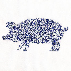 Make projects that are blooming and ready for the farm with this fun set of animals made entirely of spring flowers. The white areas in these machine embroidery designs are open to fabric. Make tea towels, totes, pillows, aprons, and more using solid-color fabrics for best results.