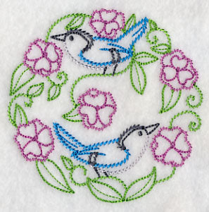 Light-stitching circles are cheerful and charming on low nap towels, shirts, table linens, pillow shams, and more!