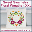 Brightly-colored floral wreaths, with sweet symmetry, are lovely additions to shirts, quilt blocks, pillow shams, and table linens.
