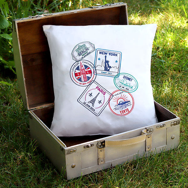 - Combine with the other Around the World stamp designs to make your project look like a well-traveled passport.