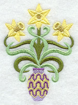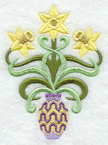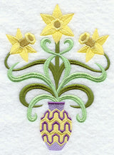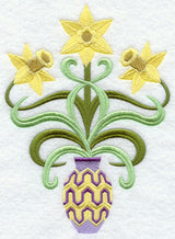 Daffodils bloom brightly inside a classic Art Deco vase. Plant them on towels, tote bags, and table linens for a fresh and stylish look.