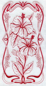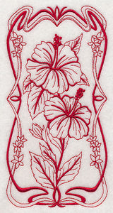 A beautiful Art Nouveau flower panel in redwork. Wonderful for tea towels, shirts, tote bags, quilts, and wall hangings!