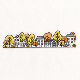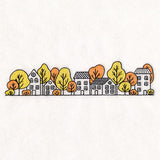 Capture the idyllic elegance of fall with a fun border featuring saltbox houses and trees.