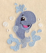 Stitch this playful, bubbly whale on towels, beachwear for kids, and lots more.