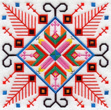 This design, inspired by folk embroidery, features vibrant colors and patterns replicating traditional motifs of Bulgaria.