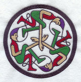 The image of intertwined men pulling beards is found in the Book of Kells and also on stone carvings.