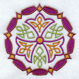 Celtic knotwork decorates this intriguing medallion design. Stitch it on its own or coordinate it with a matching neckline design.