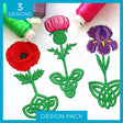 Created to mimic the look of traditional ribbon embroidery, and inspired by Celtic knotwork, these beautiful flower stems are perfect as an accent on table linens, shirts, pillows, and more.