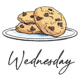 Add a sweet touch to your home decor using these chocolate chip cookies. Combine with other days-of-the-week dessert designs to create a weekly set of tea towels -- or skip the last color stop to omit the text for more scrumptious projects.