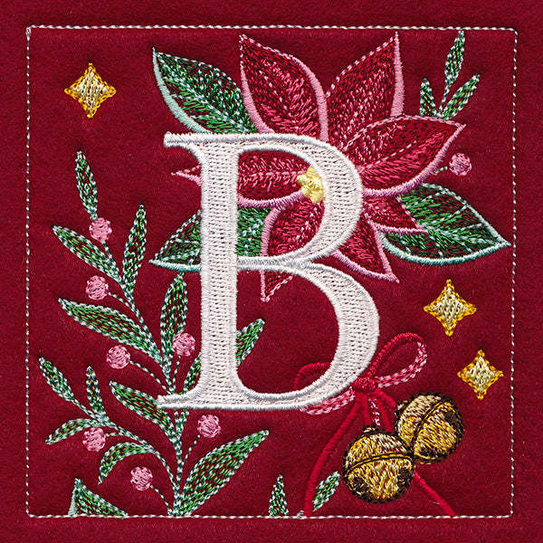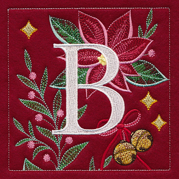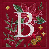 The letter "B" is surrounded by a poinsettia and botanicals in this stunning Christmas square.