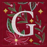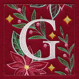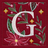 The letter "G" is surrounded by a poinsettia and botanicals in this stunning Christmas square.
