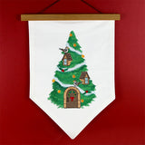 Create homey bird decor for Christmas with a Christmas tree birdhouse dressed with garland and ornaments.