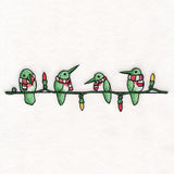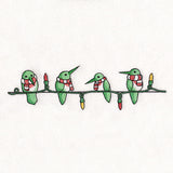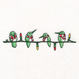 Flit and flutter into Christmas with a quartet of hummingbirds sitting on a strand of lights.