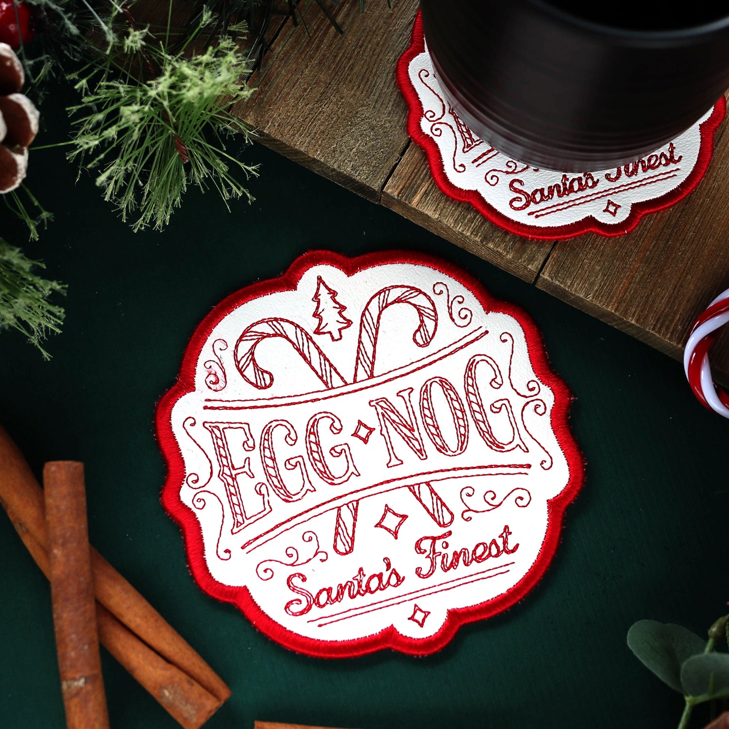 Bring a dash of vintage charm to your holiday table with these in-the-hoop coasters featuring festive labels. These designs are perfect for cozy gatherings and Christmas gifts.