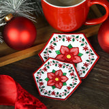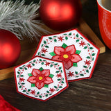Bring beautiful Christmas rose accents to your home decor with an in-the-hoop coaster design.