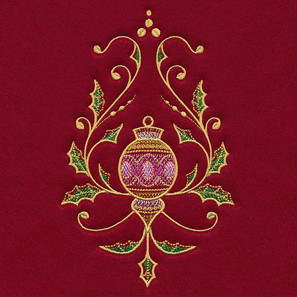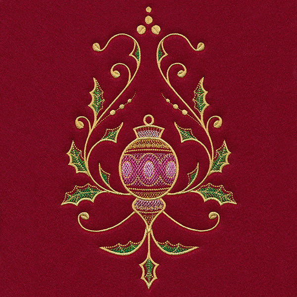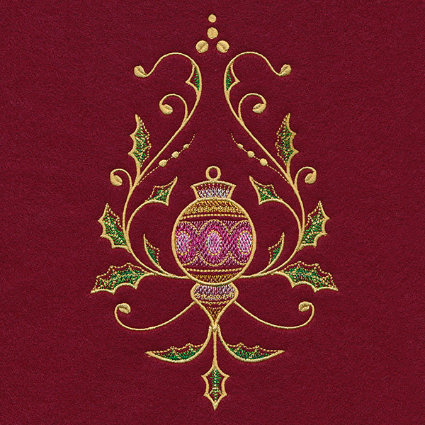 Decorate tree skirts, stockings, and more with this stunning ornament machine embroidery design.
