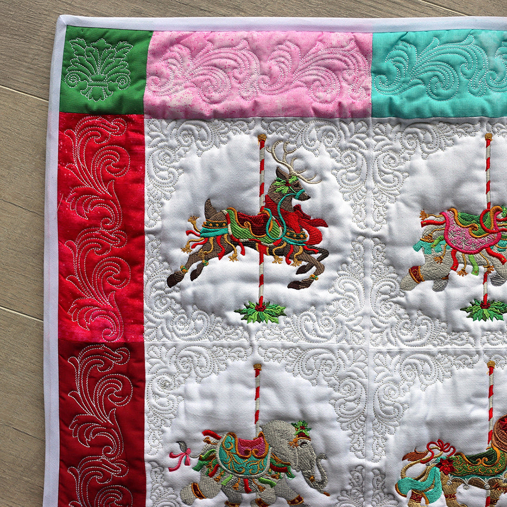 Add timeless sophistication to your projects with this collection of elegant flourish motifs. Featuring a graceful border, ornate corner frame, and intricate accent element, these designs are perfect for dressing up table linens, quilt blocks, pillows, and more.