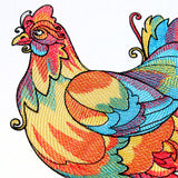 This chicken is ready to roost on your projects! Our team used color theory when layering threads and stitches to create a vibrant machine embroidery design without the need for endless thread spools and color changes. It uses only 5 unique thread colors and 7 color changes! Can you believe it? It's true! Stitch this motif onto aprons, pillows, totes, sweatshirts, and more. Contains sheer stitching throughout. Use solid-color fabrics for best results.