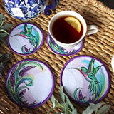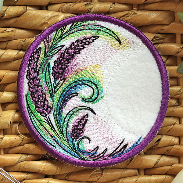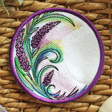 Add a splash of color and elegance to your kitchen with this Lavender Coaster. This in-the-hoop machine embroidery coaster features graceful lavender stems inspired by our original Lavender Hummingbird design design. Swirling lavender, and richly textured details, are perfect for spring and summer stitching. Get the whole set and stitch a coordinating trivet, potholder and coaster.— all designed for easy in-the-hoop construction with beautiful results.