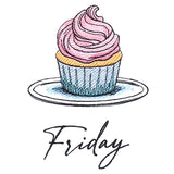 Add a sweet touch to your home decor using this delicious cupcake. Combine with other days-of-the-week dessert designs to create a weekly set of tea towels -- or skip the last color stop to omit the text for more scrumptious projects.