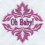 Fashionable damask, with the text "Oh Baby!" in the center.